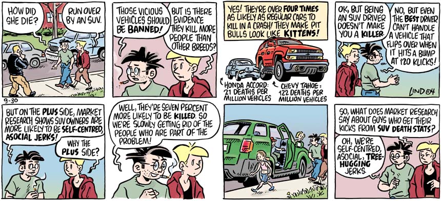 September 30, 2004 | SUV Breeds « Previous | Current | Next » Comments (0) | Archives | About Email lind at lindtoons.com