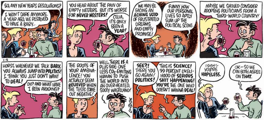 You can see a more extensive portfolio of my work at the blog lindtoons.com, including This Bright Future, a distilled and partial continuation of Weltschmerz, Turtle Creek, a daily comic about a turtle and a computer, and Footprint in Mouth, a quarterly cartoon I draw for Alternatives.