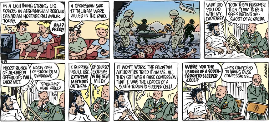 Last we saw, Raj was getting a lecture from his captor about how terrorists stole strategy from the Americans (see here. You can follow the past two years of Raj's life by clicking here (in general, click on Archives and then on any character or theme).