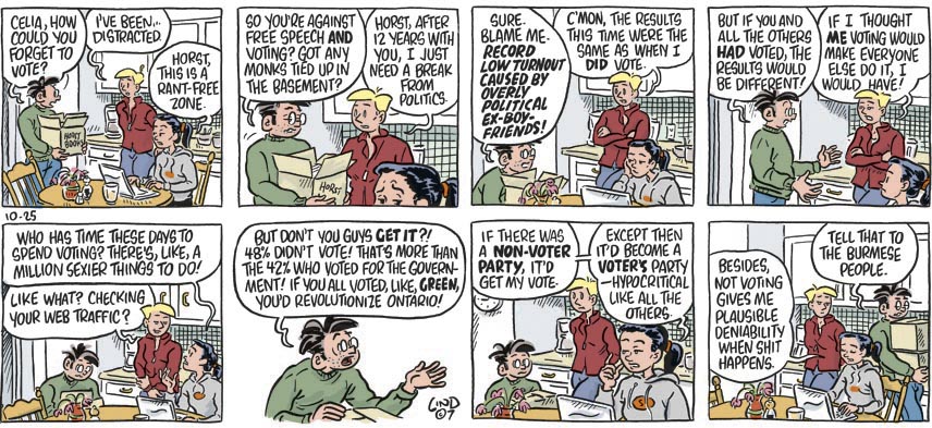 That is, if the people decide to use it. True, it's flawed. But that's no excuse for not voting. Especially when we've had weeks of news about people dying for the right we have -- the right 48 percent of Ontarians didn't exercise this month.