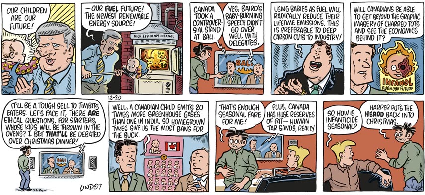 I'm putting the finishing touches on my New Year's strip, which will complete this trilogy on Canada's modest Bali proposal.