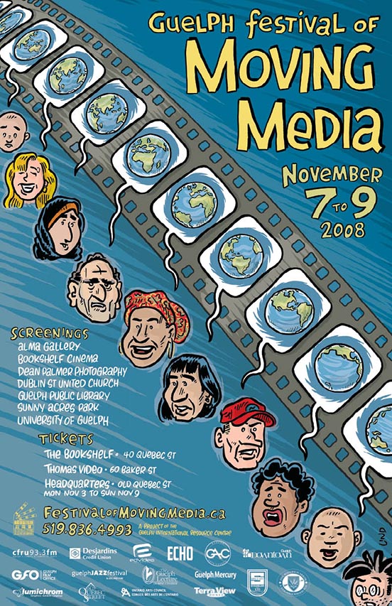 Yes, I know, three months ago I said Weltschmerz is over. But now and then, I may get an idea while I'm still mulling over where my cartooning will lead me. And this is how I will get it out in the world. I don't know if Horst will pop up again. But he does have a cameo appearance on the poster for the Guelph Festival of Moving Media that I just illustrated and designed. It's posted below.